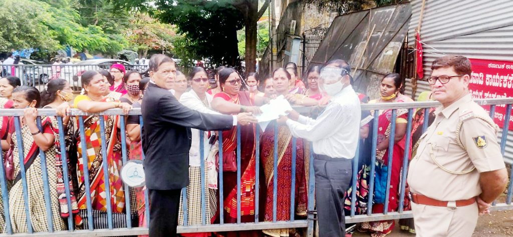 अंगणवाडी कर्मचाऱयांना किमान 21 हजार रुपये वेतन द्यावे, अशी मागणी त्यांनी यावेळी निवेदनात केली. कोरोना काळात आपला जीव धोक्मयात घालून काम केले असल्याने किमान 10 हजार रुपये भत्ता द्यावा, असेही या निवेदनात म्हटले आहे. सेवेनुसार वेतनामध्ये वाढ करावी, खासगीकरण करू नये, प्रत्येक महिन्याच्या 5 तारखेच्या आत पगार द्यावा यासह इतर मागण्या करण्यात आल्या. महसूल अधिकारी एस. एम. परगी यांना निवेदन देण्यात आले. यावेळी जिल्हाध्यक्ष ऍड. नागेश सातेरी, वाय. बी. शिगीहळ्ळी, मीनाक्षी कोटगी, मंदा नेवगी, एस. बी. बेळगावकर, एस. एस. ठोमरे, मनीषा होनगेकर, गंगु कदम, रेणुका शिंदे यांच्यासह महिला उपस्थित होत्या..