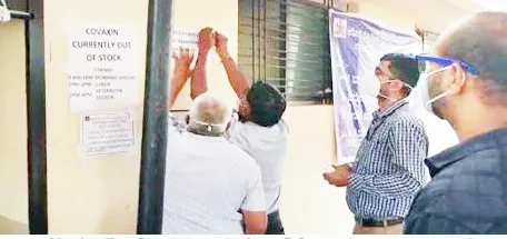 अखेर बिम्ससमोर ‘कोव्हॅक्सिन नो स्टॉक’ असा फलक लावण्यात आल्याने नागरिकांमधून नारजी व्यक्त करण्यात आली. बिम्समध्ये लसींचा साठा पुरेसा नाही याची चर्चा होतीच. परंतु आता मात्र ‘नो स्टॉक’चा फलक झळकल्याने ही चर्चा खरी ठरली. सकाळपासून दूरवरुन येवून लसींसाठी रांग लावलेल्या नागरिकांना हा फलक पाहताच परत फिरावे लागले.