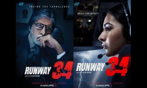 चित्रपटाच्या फर्स्ट लुक पोस्टर्सवर अजय देवगण, अमिताभ बच्चन आणि रकुल प्रीत सिंह यांच्या व्यक्तिरेखा दर्शविण्यात आल्या आहेत. अजय आणि रकुल चित्रपटात वैमानिकाच्या भूमिकेत आहेत. रनवे 34 हा सत्य घटनांवर प्रेरित चित्रपट आहे. हा एक इमोशनल आणि हाय ओक्टेन थ्रिलर चित्रपट असल्याचे अजयने म्हटले आहे.