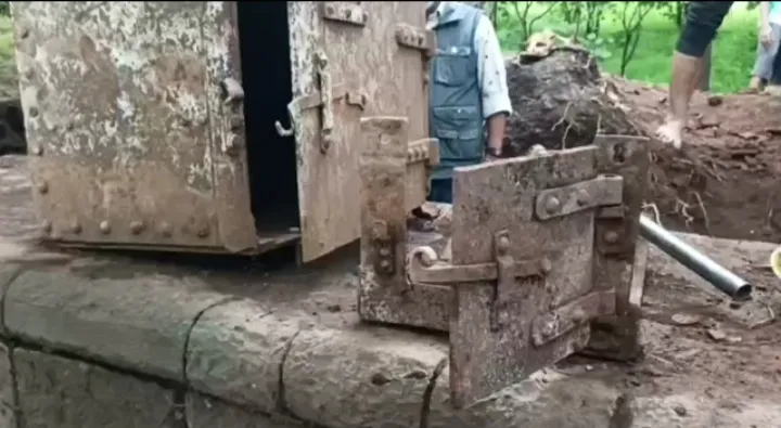सकाळी 10 वाजता राजसदरेच्या परिसरात राजा शिवछत्रपती परिवाराचे सातारा जिल्हाध्यक्ष विशाल शिंदे यांच्यासह सर्व मावळयांनी टीकाव, खोरे हाती घेत ‘हर हर महादेव’चा नारा देत कामाला सुरुवात केली. जसजशी खुदाई सुरु केली. राजवाडय़ालगत असलेल्या त्या राजसदरेच्या जुन्या इमारतीच्या भिंतीला लागून पडलेली कौले, मातीचा राडारोडा बाजूला हटवत तब्बल दीड तासाच्या कालावधीनंतर पाच फुटांचा ढिगारा हटवण्यात आला. त्याखाली गत आठवडय़ात शोधलेल्या ब्रिटीशकालीन पेटीचे काही लोखंडी अवशेष मिळाले. हे अवशेष त्याच पेटीचे असून, दोन लोखंडी आठ ते दहा फुट लांबीचे समारंत असे रॉडही आढळून आले. यामुळे या परिसरात आढळून आलेली लोखंडी पेटी ही नेमकी कशाची आहे, याबाबत तर्कवितर्क लढवले जात असून, आणखी काहीतरी या भागात आढळून येण्याची शक्यता इतिहास प्रेमींकडून वर्तवली जात आहे.