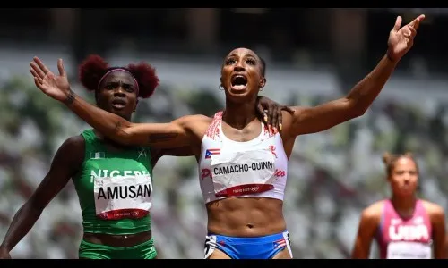 प्युर्टो रिकोची जास्मिन कॅमॅचो-क्विन हिने 100 मीटर्स अडथळय़ाच्या शर्यतीत सुवर्ण जिंकले. कॅमॅचो क्विन हिने उपांत्य फेरीत नवा ऑलिम्पिक विक्रम प्रस्थापित केला आणि नंतर सोमवारी तिने 12.37 सेकंद वेळेत हा इव्हेंट पूर्ण करत सुवर्णपदकाची नोंद केली. अमेरिकन रेकॉर्ड होल्डर केंड्रा हॅरिसनने 12.52 सेकंद वेळेसह रौप्य तर जमैकाच्या मेगन टॅपरने 12.55 सेकंद वेळेत कांस्यपदक जिंकले.