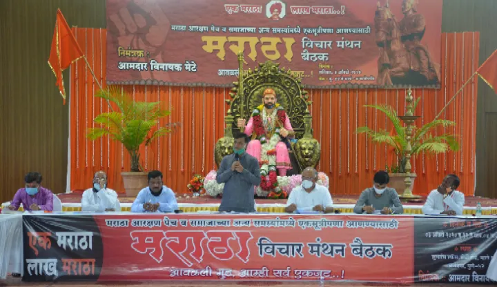 मराठा समाजाच्या आरक्षणाविषयीचा पेच आणि समाजाच्या अन्य समस्यांमध्ये एकसूत्रीपणा आणण्यासाठी मराठा विचार मंथन बैठकीचे म्हात्रे पूलाजवळील शुभारंभ लॉन्स येथे आयोजन करण्यात आले. मराठा समाजाच्या आरक्षण विषयामध्ये प्रत्यक्ष व अप्रत्यक्षपणे सहभागी विचारवंत व संस्था-संघटनांना एकत्रित करुन आमदार विनायक मेटे यांनी या बैठकीचे आयोजन केले होते.