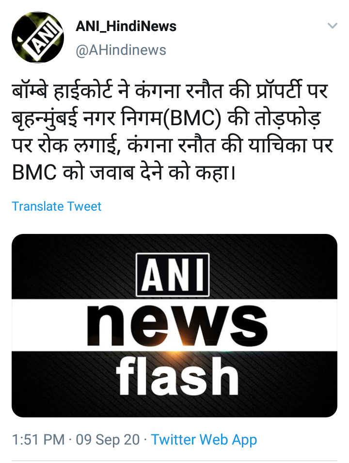 दरम्यान, आता उद्या दुपारी 3 वाजता यावर पुन्हा सुनावणी होणार आहे. तत्पूर्वी मुंबई महपालिकेकडून सकाळी 10.30 वाजता कंगनाच्या पाली हिल कार्यालयातील अनधिकृत बांधकामावर हातोडा चालवला जात होता. काल या संदर्भात पालिकेकडून नोटीसही पाठवण्यात आली होती.