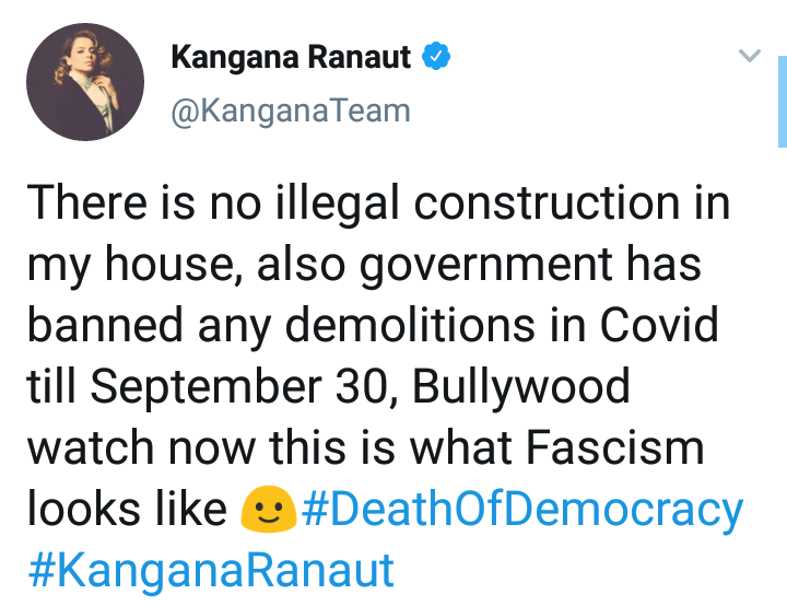 कंगना ने ट्विट करत आपल्या घरात कोणतेही अनधिकृत बांधकाम नाही असे म्हटले आहे.