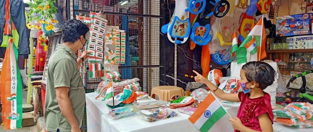 स्वातंत्र्यदिनाच्या पार्श्वभूमीवर सर्व दुकानांना आणि शोरुम्सना तिरंगा ध्वजांनी आणि फुग्यांनी सजावट करण्यात येते. मात्र शनिवार, रविवार विकेंड कर्फ्यू असल्याने शोरुम्सना करण्यात येणारी सजावट दिसणार नाही. शाळा, कॉलेज आणि विकेंड कर्फ्यूने विपेत्यांच्या सिझनवर पाणी फेरले आहे. सरकारच्या निर्देशानुसार सर्व दुकानदारांनी प्लॉस्टिक ध्वजांऐवजी कापडी ध्वज विक्रीस ठेवले आहेत. मात्र, कोरोनामुळे सरकारने घातलेल्या निर्बंधांमुळे विपेत्यांना नागरिकांचा अत्यल्प प्रतिसाद मिळत असल्याचे यावेळी पाहायला मिळाले.