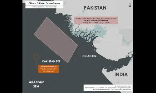 भूकंप संबंधी संशोधन आणि कच्चे तेल तसेच नैसर्गिक वायूचा शोध घेण्यासाठी चीन-पाकिस्तानने अरबी समुद्रात शोधकार्य हाती घेतले आहे. चीन आणि पाकिस्तानने 2019 मध्ये अशाच प्रकारचा प्रकल्प हाती घेतला होता. सागरातील हे सर्वेक्षण चीनचे अत्याधुनिक जहाज हाययांग डिझीकडून केले जातेय.
