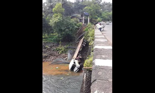 महामार्गावरून मुंबईहून गोव्याकडे जाणाऱया कंटेनर चालकाचा ताबा सुटल्याने कंटेनर पुलावरून सुमारे 20 फूट खोल नदीपात्रात कोसळण्याची घटना घडली. गुरुवारी दुपारी 2 च्या दरम्यान आंजणारी पुलावर झालेल्या या अपघातात चालक मुकेश यादव गंभीर जखमी झाला आहे.