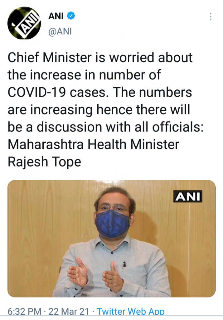 महाराष्ट्रात दिवसेंदिवस कोरोना रुग्णांची संख्या झपाट्याने वाढत आहे. या पार्श्वभूमीवर आरोग्य मंत्री राजेश टोपे यांनी आज राज्यातील कोरोना परिस्थितीचा आढावा घेतला.
