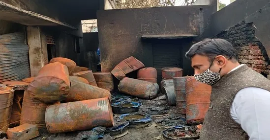 बेंगळूर मधील बापूजी नगर येथे असलेल्या केमिकल फॅक्टरीत मंगळवारी भीषण आग लागली होती. आगीमुळे मोठ्या प्रमाणात नुकसान झाले आहे. दरम्यान आरोग्य आणि वैद्यकीय शिक्षण मंत्री के. सुधाकर यांनी गुरुवारी केमिकल फॅक्टरीला भेट दिली. यावेळी मंत्री सुधाकर यांनी झालेल्या नुकसानीची माहिती घेतली. मंगळवारी आग लागल्यानंतर कारखान्याच्या गोदामाचे मालक असलेल्या तीन जणांना बुधवारी पोलिसांनी अटक केली होती. या परिसरातील घरे आणि वाहनांसह मालमत्तेचे मोठ्या प्रमाणात नुकसान झाले आहे.