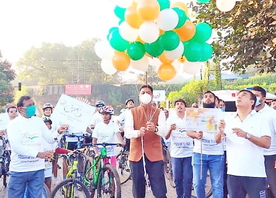 आझादी का अमृत महोत्सव यानिमित्त स्मार्ट सिटी लिमिटेडच्यावतीने सायकल रॅली काढण्यात आली. जिल्हाधिकारी एम. जी. हिरेमठ यांच्या हस्ते या रॅलीचे उद्घाटन करण्यात आले. यावेळी आमदार अनिल बेनके, स्मार्ट सिटीचे व्यवस्थापकीय संचालक प्रवीण बागेवाडी उपस्थित होते.