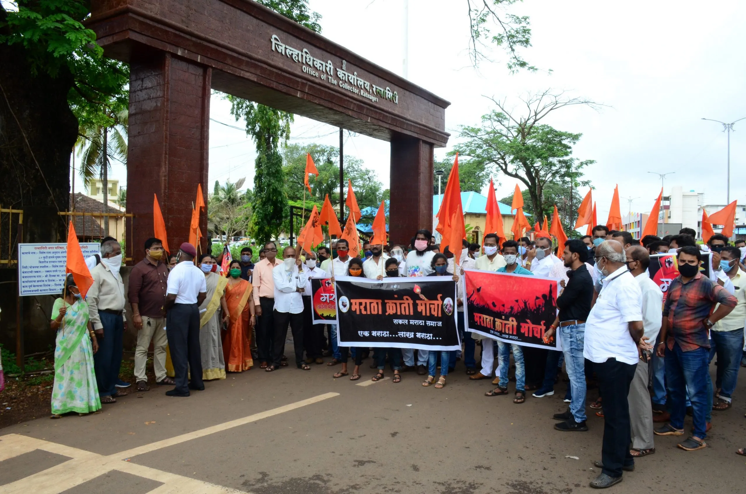 मराठा आरक्षणाच्या मागणीसाठी राज्यभरात सुरू असलेल्या आंदोलनाच्या पार्श्वभूमीवर रत्नागिरी तालुक्यातील सकल मराठा समाज देखील पुढे सरसावला आहे. शुक्रवारी मराठा आरक्षणासाठी जिल्हाधिकारी कार्यालयावर मराठा बांधवांनी धडक दिली. त्यापूर्वी मारूतीमंदिर येथील छ.शिवाजी महाराज पुतळय़ाला अभिवादन करून मोर्चेकरी जिल्हाधिकारी कार्यालयावर धडकले. कार्यालयाच्या मुख्य प्रवेशद्वाराबाहेर बहुसंख्येने मराठा आंदोलनकर्ते सहभागी झाले होते. त्यावेळी मराठा आरक्षण देण्यास शासनाकडून होत असलेल्या दिरंगाईबाबत आंदोलकांनी खेद व्यक्त केला. शासनाच्या नाकर्ते धोरणाबाबत जोरदार निदर्शने करण्यात आली.