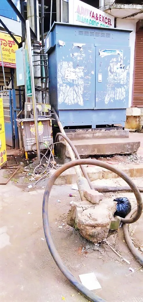 आरपीडी चौक येथे दररोज शेकडो नागरिक ये-जा करीत असतात. आरपीडी कॉलेज रोडवर कोसळलेला जुना विद्युत खांब ट्रान्स्फॉर्मर शेजारी टाकण्यात आला आहे. याचसोबत हेस्कॉमच्या भूमिगत विद्युत वाहिन्या वाहतुकीसाठी अडथळा ठरत आहेत. त्यामुळे विद्युत वाहिनी व पथदीप हटविण्याची मागणी केली जात आहे.