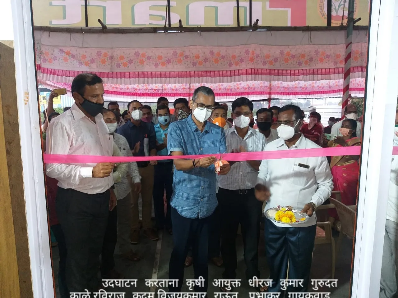 लिंब- महाराष्ट्रातील पहिल्या शेतकरी मार्टचे उदघाटन करताना राज्याचे कृषी आयुक्त धीरज कुमार सोबत मान्यवर.