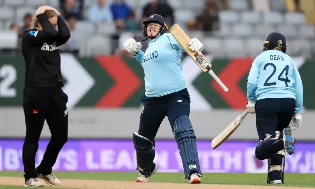 न्यूझीलंडसाठी मध्यफळीतील अनुभवी फलंदाज मॅडी ग्रीनने सर्वाधिक नाबाद 52 धावा जमविल्या तर कर्णधार सोफी डिव्हाईनने 41 धावांचे योगदान दिले. इंग्लंडकडून प्रथम फलंदाजी मिळाल्यावर इंग्लंडने न्यूझीलंडचा डाव 48.5 षटकांत 203 धावांत संपुष्टात आणला. इंग्लंडची वेगवान गोलंदाज केट क्रॉस (35 धावांत 3 बळी) व स्टार स्पिनर सोफी एक्लेस्टोन (41 धावांत 3 बळी) या दोघींनी मिळून सहा बळी मिळविले तर स्पिनर चार्ली डीनने 2 बळी मिळविले. त्यानंतर नताली स्किव्हरने संयमी अर्धशतक (61) नोंदवत विजयात मोलाची भूमिका बजावली. त्यांची स्थिती 5 बाद 176 अशी भक्कम होती. पण पाच षटकांतच त्यांची 9 बाद 196 अशी घसरगुंडी उडाल्यानंतर श्रबसोल (7) व चार्ली डीन (0) यांनी विजय मिळवून दिला.
