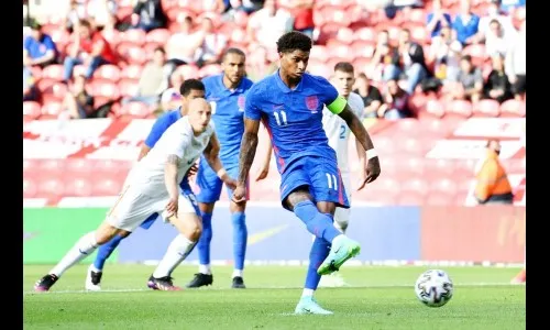 2021 च्या युरो चषक फुटबॉल स्पर्धेसाठी येथे झालेल्या शेवटच्या सरावाच्या सामन्यात मार्पूस रॅशफोर्डच्या पेनल्टीवरील एकमेव गोलाच्या आधारे यजमान इंग्लंडने रोमानियाचा 1-0 असा निसटता पराभव केला.