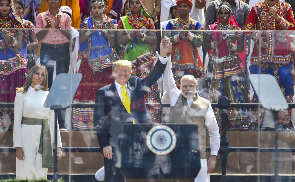 - मोटेरा स्टेडियमवरील कार्यक्रमात मोदी-ट्रम्प यांचे तीनवेळा आलिंगन