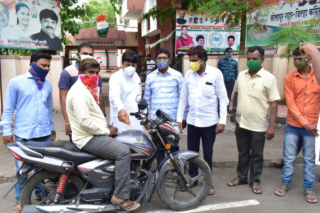 पेट्रोल डिझेल, इंधन दरवाढीच्या निषेधार्थ काँग्रेस भवन येथे सोलापूर शहर युवक काँग्रेसच्या वतीने सोलापुर शहर अध्यक्ष प्रकाश वाले यांच्या नेतृत्वाखाली इंधन दरवाढी विरोधात ‘थेंब थेंब पेट्रोल वाटप’ करुन आज, गुरुवारी आंदोलन केले.