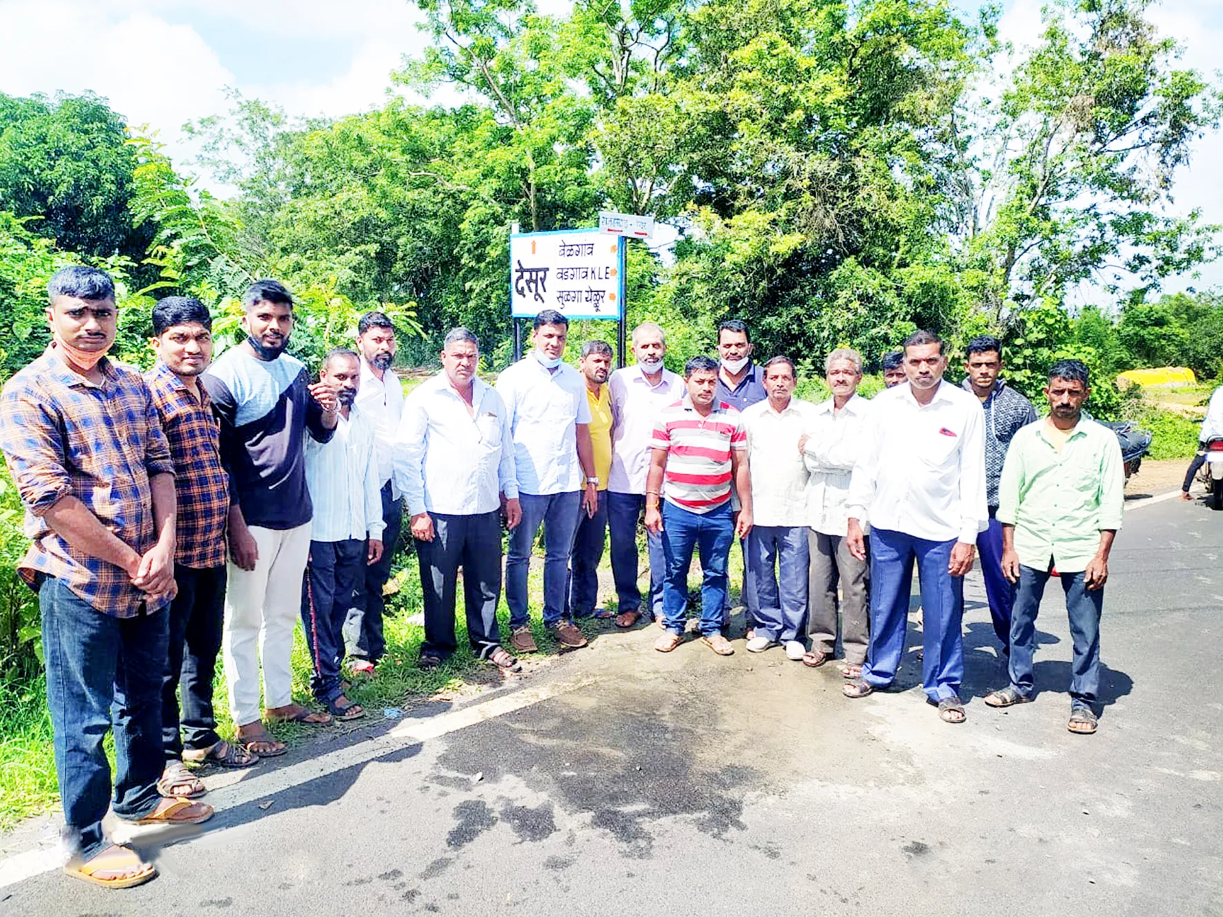 सोमवारी फलक उभारण्यासाठी जि. पं. सदस्य रमेश गोरल यांच्यासह देसूर ग्रा. पं. सदस्य पंकज घाडी, सतीश चव्हाण, रणजित पोटे, अजित देशपांडे, गिरीश गोरे, वैभव जोशी, विनोद पाटील, बाळू काळसेकर, बसवंत कदम, मनोहर शिंदे, अरुण काळसेकर, राजू जळगेकर यांच्यासह नागरिक उपस्थित होते.