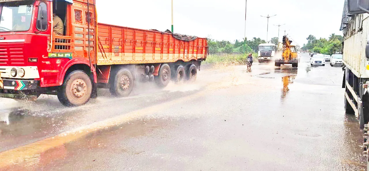 उत्सव हॉटेलनजीकच्या सर्कलपासून रस्त्यावरून थेट पाणी वाहू लागले आहे. एका चार चाकी शोरुमच्या बाजूलाच मुख्य महामार्गावर पाणी वाहताना दिसत आहे. मोठी वाहने जात असताना बाजूच्या दुचाकी वाहनधारकांच्या अंगावर हे पाणी उडत आहे. यामुळे अनेक दुचाकीस्वार या ठिकाणाहून ये-जा करत असताना रस्त्याच्या पाण्यामुळे भिजून गेले आहेत.