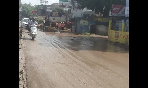 पाईपलाईनच्या कामाचा मलमा रस्त्यावर अस्ताव्यस्त झालेला असतो. गुरुवारी सायंकाळी नवरंग हॉटेल परिसरात हा मलमा रस्त्यावर आला होता. त्यामुळे वाहनधारकांना मोठी कसरत करावी लागली. चिखलात वाहने अडकत असल्याने वाहनधारक हैराण झाले होते.