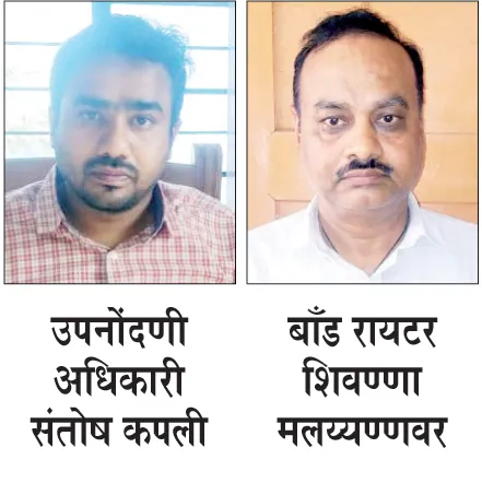कोडलीवाड (ता. सौंदत्ती) येथील शिवाप्पा मुत्याप्पा वरगण्णावर या शेतकऱयाने दिलेल्या फिर्यादीवरून उपनोंदणी अधिकारी संतोष कपली, बाँड रायटर शिवाण्णा ऊर्फ शिवयोगी शंकरय्या मलय्यण्णवर या दोघा जणांना रंगेहाथ पकडण्यात आले. या अधिकाऱयांनी दहा हजार रुपये मागितले होते.