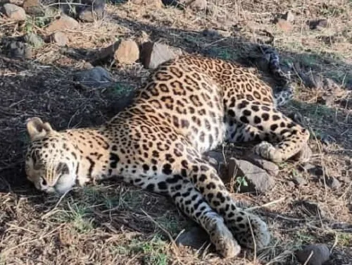 शनिवारी सकाळी सहा वाजेच्या दरम्यान शिवारात बिबट्याने डरकाळी फोडली. त्यानंतर नागरिकांचे त्याच्याकडे लक्ष गेले. एका झाडाखाली बसलेला हा बिबट्या काही वेळातच बेशुद्ध झाला. कुत्र्यांनी त्याला चावा घेण्याचा प्रयत्न केला. त्यानंतर नागरिकांची गर्दी वाढत गेली. वन विभागाच्या अधिकाऱ्यांना माहिती मिळताच त्याठिकाणी पथक दाखल झाले. पथकाने पंचनामा केला असून,उस्मानाबाद येथील पशुवैद्यकीय दवाखान्यात शवविच्छेदन करण्यात येणार आहे.