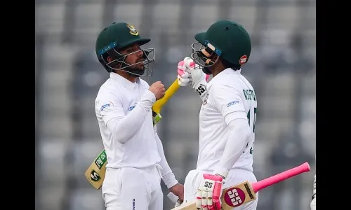 बांगला देश प. डाव- 3 बाद 240 (मोमीनूल हक खेळत आहे. 79, नजमूल हुसेन 71, सैफ हसन 8, तमीम इक्बाल 41).