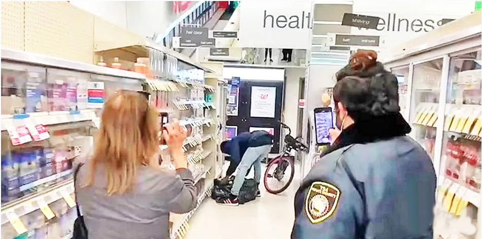वॉलग्रीन्स स्टोअरमधील चोरीच्या एका घटनेची चित्रफित सोशल मीडियावर व्हायरल होत आहे. एक व्यक्ती सायकलवर स्वार होत ब्लॅक पॉलिथीमध्ये सामान भरत असल्याचे तेथे उपस्थित महिला आणि एक व्यक्ती याचे चित्रण करताना यात दिसून येते. चोर सामान गोळा करून स्वतःच्य सायकलवरून निघून जातो आणि तेथे उपस्थित लोकांना काहीच करता आले नाही.