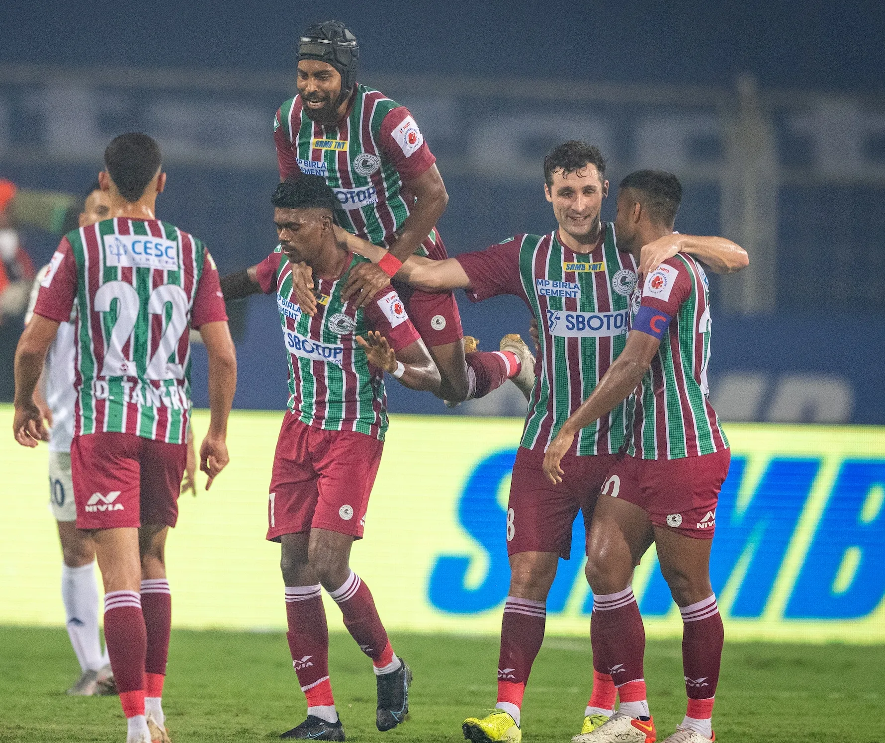 सामन्याच्या पहिल्या दहा मिनिटांच्या खेळात एफसी गोवाच्या मोहम्मद नेमील आणि देवेंद्र मुरगावकर यांचे गोल करण्याचे यत्न थोडक्यात हुकले. 23व्या मिनिटाला एटीके मोहन बागानने आघाडी घेणारा गोल केला. कालच्या सामन्यात नेहमीच धोकादायक वाटणाऱया लिस्टन कुलासोने हा गोल दिपक टांग्रीच्या पासवर केला. त्याच्या जबरदस्त फटक्यावर एफसी गोवाचा गोलरक्षक धीरज सिंग काहीच करू शकला नाही.