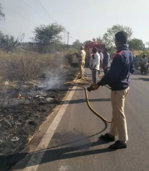 शेंडा पार्क येथील ऑक्सीजन पार्क शेजारील वाळलेल्या गवताला आग लागून पुन्हा शेकडो झाडे आगीच्या भक्ष्यस्थानी पडण्याचा धोका निर्माण झाला होता. गुरुवारी दुपारी अचानक आर.के.नगर येथील रस्त्याकडील गवताला आग लागली. नागरिकांनी अग्निशमन दलाला तात्काळ कळविले. अग्निशमन दल तात्काळ घटनास्थळी दाखल झाले. या दलाच्या जवानांनी शर्थीचे प्रयत्न करत ही आग आटोक्यात आणली.