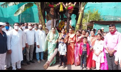 औंधच्या श्रीयमाईदेवी रथोत्सव यंदा कोरोनाच्या पार्श्वभूमीवर मंगळवारी सकाळी साडे दहा वाजता प्रशासनाने घालून दिलेल्या नियम व अटींचे पालन करत देवस्थानच्या मुख्य विश्वस्त गायत्रीदेवी पंतप्रतिनिधी यांच्या हस्ते ग्रामनिवासिनी श्रीयमाई देवी मंदिरामध्ये श्रीयमाईदेवीच्या उत्सवमूर्तीचे विधीवतपणे षोडषोपचारे पूजन करण्यात आले. देवीची उत्थापना करून देवीची उत्सवमूर्ती सभामंडपात गायत्रीदेवी पंतप्रतिनिधी यांच्या हस्ते आणण्यात आली.यावेळी देवीच्या उत्सवमूर्तीचे विधिवतपणे पूजन करण्यात आले. गणेश इंगळे यांनी पौरोहित्य व मंत्रपठन केले. दुध,दही,पुष्प अर्पण करून देवीची षोडशोपचारे पूजा करण्यात आली.त्यानंतर देवीची चौपाळयाजवळ प्रतिष्ठापणा करण्यात आली .त्याठिकाणी गायत्रीदेवी यांचे लहान बंधू यझदी बाबा यांनी देवीची विधीवत पूजा केली. ऐतिहासिक परंपरेनुसार सलामी देऊन यझदी बाबानी देवीची पालखीत प्रतिष्ठापना केली.त्यानंतर पालखीचे मानकरी भोई यांनी वाद्यव्रूंदाच्या गजरात पालखीची फेरी रथापर्यंत नेहली देवस्थानच्या मुख्य विश्वस्त गायत्रीदेवी यांच्या उपस्थितीत यझदी बाबा यांच्या हस्ते रथपूजन करून देवीची दुमजली रथात प्रतिष्ठापना करण्यात आली. यावेळी सरपंच सोनाली मिठारी, उपसरपंच दिपक नलवडे,हणमंतराव शिंदे,राजेंद्र माने,आब्बास आतार,सहाय्यक सपोनि प्रशांत बधे,शंकरराव खैरमोडे, चेअरमन उध्दव माने, संतोष शिंदे,शीतल देशमुख,वहिदा मुल्ला,शुभांगी हरिदास,वंदना जायकर, शाकिर आतार,गणेश देशमुख, तानाजी इंगळे,चंद्रकांत कुंभार,अनिल माने, गणेश हरिदास,वसंत जानकर ,वसंत माने,सदाशिव पवार,दत्तात्रय जगदाळे,नवनाथ देशमुख, केशव जाधव,दिनकर शिंगाडे ,प्रशांत खैरमोडे,रमेश जगदाळे, मानकरी माळी ,पुजारी ,भोई,डवरी ,गोंधळी,घडशी आदींसह ग्रामस्थ उपस्थित होते.