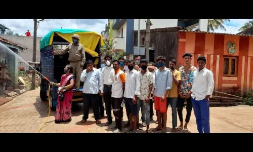 गावामध्ये कोरोना महामारी आटोक्यात आणण्यासाठी ग्राम पंचायतने कंबर कसल्याचे चित्र दिसून येत आहे. गावामध्ये कोरोना संशयीत रुग्ण आढळत असल्यामुळे कोरोना महामारीचा बिमोड करण्यासाठी संपूर्ण गावातील गल्ल्यांमध्ये कोरोना जंतूनाशक फवारणी शनिवारी करण्यात आली. ग्राम पंचायत सदस्या भारता पाटील व ग्राम पंचायत सदस्य तानाजी पाटील यांनी स्वतः रिक्षामधून स्वतः फवारणी केली.