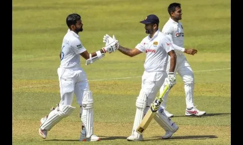 येथे सुरू असलेल्या पहिल्या क्रिकेट कसोटीत शुक्रवारी खेळाच्या तिसऱया दिवशी कर्णधार करुणारत्ने आणि थिरिमने यांच्या अर्धशतकांमुळे लंकेचा पहिला डाव सावरला. दिवसअखेर लंकेने 3 बाद 229 धावा जमविल्या. तत्पूर्वी बांगलादेशने आपला पहिला डाव 7 बाद 541 घोषित केला. लंकेचा संघ 312 धावांनी पिछाडीवर असून बांगलादेशची स्थिती मजबूत आहे.