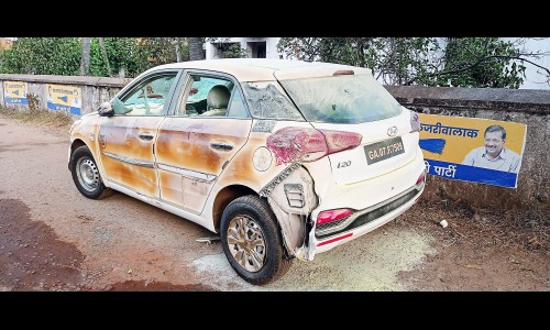 यावेळी रस्त्याशेजारी पार्क करून ठेवण्यात आलेल्या पर्यटकांच्या नव्या कोऱया कारगाडीनेही पेट घेतल्याने गाडीचे मोठय़ा प्रमाणात नुकसान झाले.