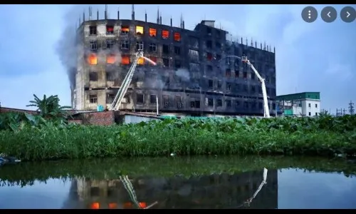 बांगलादेशातील एका कारखान्यात शुक्रवारी भीषण आग लागून 52 जण ठार झाले. या भीषण दुर्घटनेत बहुमजली इमारत आगीच्या भक्ष्यस्थानी पडली. या दुर्घटनेत कमीतकमी 30 लोक जखमी झाले आहेत. इमारतीला आग लागल्याची जाणीव होताच कामगारांनी आपला जीव वाचवण्यासाठी वरच्या मजल्यावरून खाली उडय़ा मारल्याने अनेक जण जखमी झाले. तसेच काहीजण अद्याप बेपत्ता असल्याची नोंद आहे.