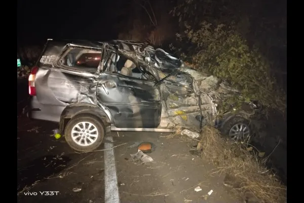 याबाबत भुईंज पोलिसांकडुन मिळालेली माहिती अशी की, पुणे बेंगलोर राष्ट्रीय महामार्गावर वेळे गावच्या हद्दीत खंबाटकी बोगद्याच्या अलिकडे पुणे बाजूकडे निघालेले इनोव्हा कार क्र. श्प् 14 अ 6666 ही कार कर्नाटक येथील गोकर्ण महाबळेश्वर येथून दर्शन घेऊन पुण्याबाजुकडे निघाली होती. पहाटे साडेपाचच्या सुमारास कारवरील चालकाचा ताबा सुटल्याने जोरदार अपघात झाला. कारमध्ये सात जण प्रवास करत होते. यात रंजना ज्ञानेश्वर सराफ (वय 52), आणि कांताई वाल्मिक जाधव (वय 70) या मायलेकींचा जागीच मृत्यु झाला.