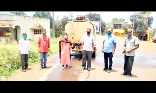 मंगळवारी सकाळी बहाद्दरवाडी या गावातून सॅनिटायझर फवारणीला सुरुवात केली. फवारणीच्या वाहनाचे पूजन ग्रामपंचायत अध्यक्षा स्नेहल लोहार, उपाध्यक्ष मल्लाप्पा पाटील, पीडीओ सुनिता पाटील आदींच्या हस्ते करण्यात आले. यावेळी ग्रामपंचायतीचे कर्मचारी निलजकर, डांगे आदी उपस्थित होते.