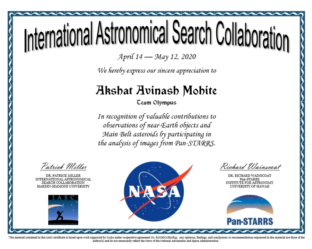 अक्षत मोहिते हा सध्या नासामध्ये शास्त्रज्ञ म्ह्णून नोकरी करत आहे. तो केवळ 19 वर्षांचा आहे. सध्या लॉकडाऊन असल्यामुळे अक्षत हा त्याच्या ठाणे येथील घरी अडकला आहे. या लॉकडाऊनच्या काळात नासाने जगभरातील अंतराळ प्रेमींकरिता व खगोल अभ्यासकांना करिता एक योजना राबवली होती. या योजनेला नासाने इंटरनॅशनल ऍस्ट्रॉनॉमिकल सर्च कोलॅबरेशन असे नाव देखील दिले होते. भारतातून या शोध मोहिमेचे प्रतिनिधित्व टीम ऑलॉम्पस यांनी केले. या टीममध्ये अक्षत मोहिते व त्याचा मित्र प्रज्ञेश म्हात्रे हा होता. यांना नासाकडून अंतराळाचा सॅटेलाईट व टेलिस्कोपच्या माध्यमातून घेतलेल्या रेडिओ इमेज डेटा पुरवण्यात आला होता. या डेटामध्ये अंतराळातील तब्बल 150 फोटो या दोघांनी अभ्यासले. हे फोटो काळे-पांढरे व ठिबके या प्रकारात होते. उपग्रह देत असणाऱ्या फोटोंच्या सहाय्याने त्यांना अंतराळातील नवीन उपग्रह शोधून काढायचे होते.