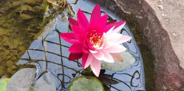 कोल्हापूर स्टील मधून सेवानिवृत्त झालेले प्रकाश मोरे यांनी बागेची आवड असल्याने अंगणात निवडक झाडांची रोपं, वेलं लावले आहेत. कमळाच्या वेलाचे त्यांनी अंगणात तीन वर्षांपूर्वी लागवड केली होती. त्यास प्रामुख्यांने फिक्कट गुलाबी रंगाचे कमळाचे फूल येत होते.