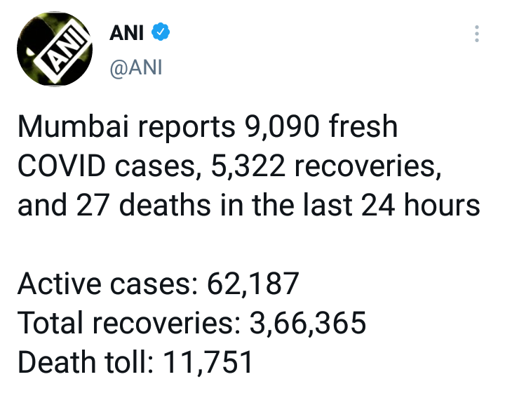 - मुंबईत दिवसभरात तब्बल 9,990 नवे रुग्ण , 27 मृत्यू