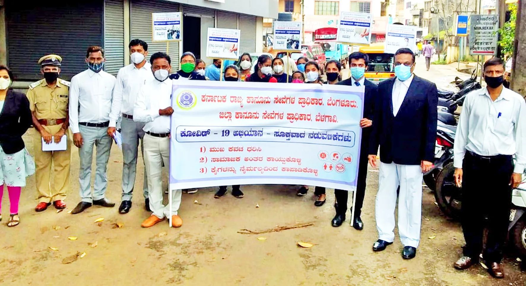 यावेळी कोरोनापासून बचाव करण्यासाठी घ्यावयाच्या दक्षतेबाबत जनजागृती करण्यात आली. या रॅलीमध्ये बार असोसिएशनचे अध्यक्ष डी. एम. पाटील, उपाध्यक्ष गजानन पाटील, कायदा सेवा प्राधिकारचे सेपेटरी न्यायाधीश विजय अर्स, जॉईंट सेपेटरी शिवपुत्र फटकळ, महिला प्रतिनिधी सरिता श्रेयेकर, सदस्य कलमेश मायाण्णाचे, नितीन गंगाई यांच्यासह आरएल लॉ कॉलेजच्या विद्यार्थ्यांनी सहभाग घेतला होता.