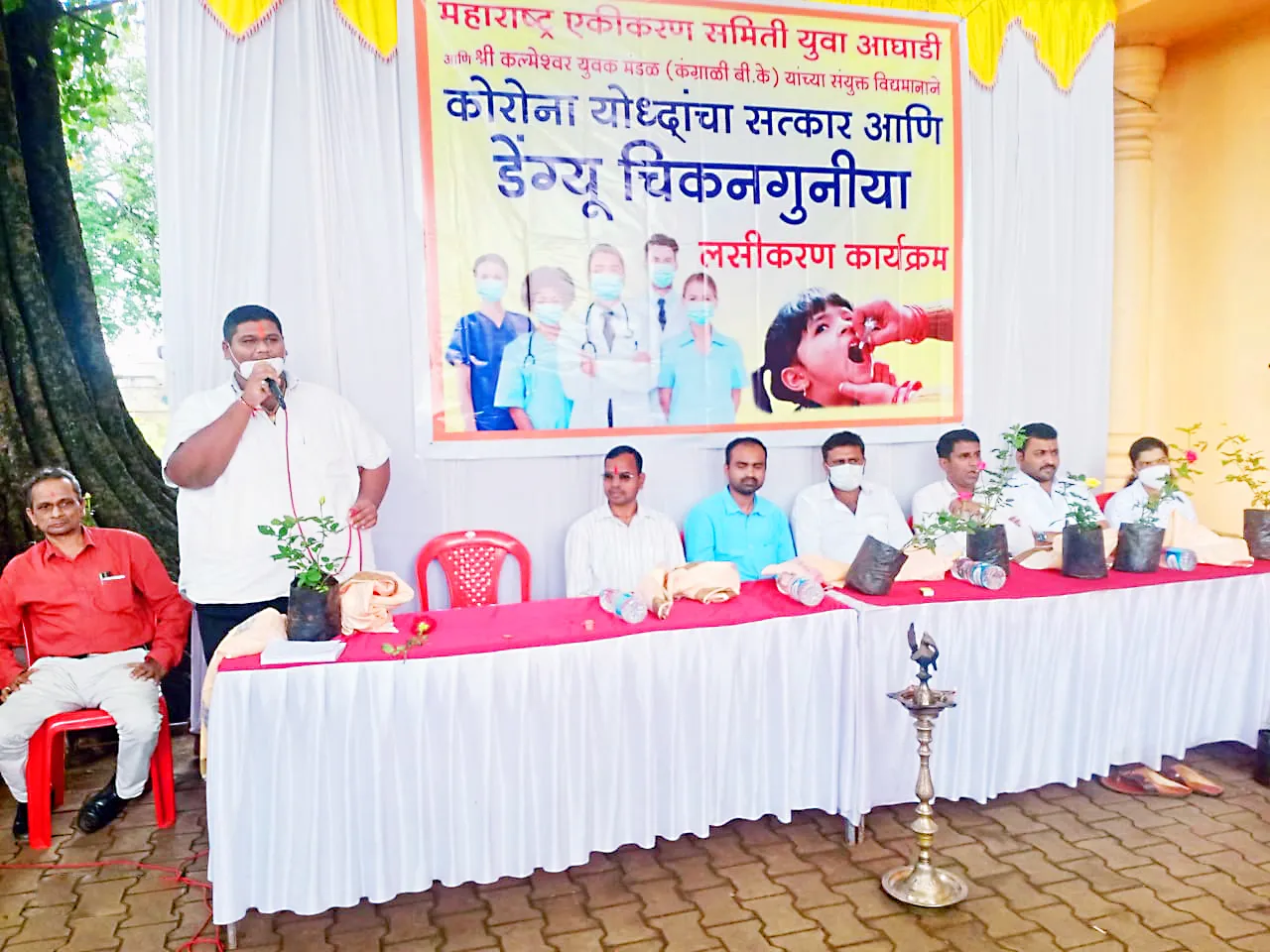 कंग्राळी बुद्रुक येथे म. ए. युवा आघाडी व कलमेश्वर युवक मंडळातर्फे आयोजित कोरोनायोद्धय़ांचा सत्कार व चिकुनगुनिया आजारावरील औषधांचे डोस वितरण कार्यक्रम रविवारी गावचे जागृत देवस्थान कलमेश्वर मंदिर आवारात पार पडला. यावेळी ते प्रमुख पाहुणे म्हणून बोलत होते. अध्यक्षस्थानी मंडळाचे अध्यक्ष नारायण पाटील होते.