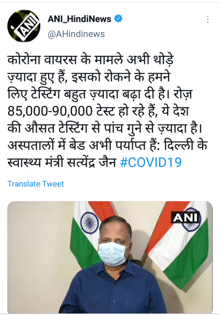 राजधानी दिल्लीत झपाट्याने रुग्ण संख्या वाढत आहे. याबाबत बोलताना जैन म्हणाले, याआधी लॉकडाऊन लावले होते कारण या विषाणूबाबत अधिक माहिती नव्हती.
