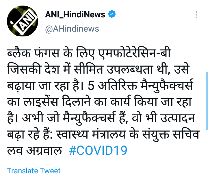 पुढे ते म्हणाले, ब्लॅक फंगससाठी उपयुक्त असलेल्या एमफोटेेरेसिन – बी याचे उत्पादन वाढविण्यावर भर दिला जात आहे. यासाठी अजून 5 कंपन्यांना लायसन्स मिळावे यावर आम्ही काम करीत आहोत.