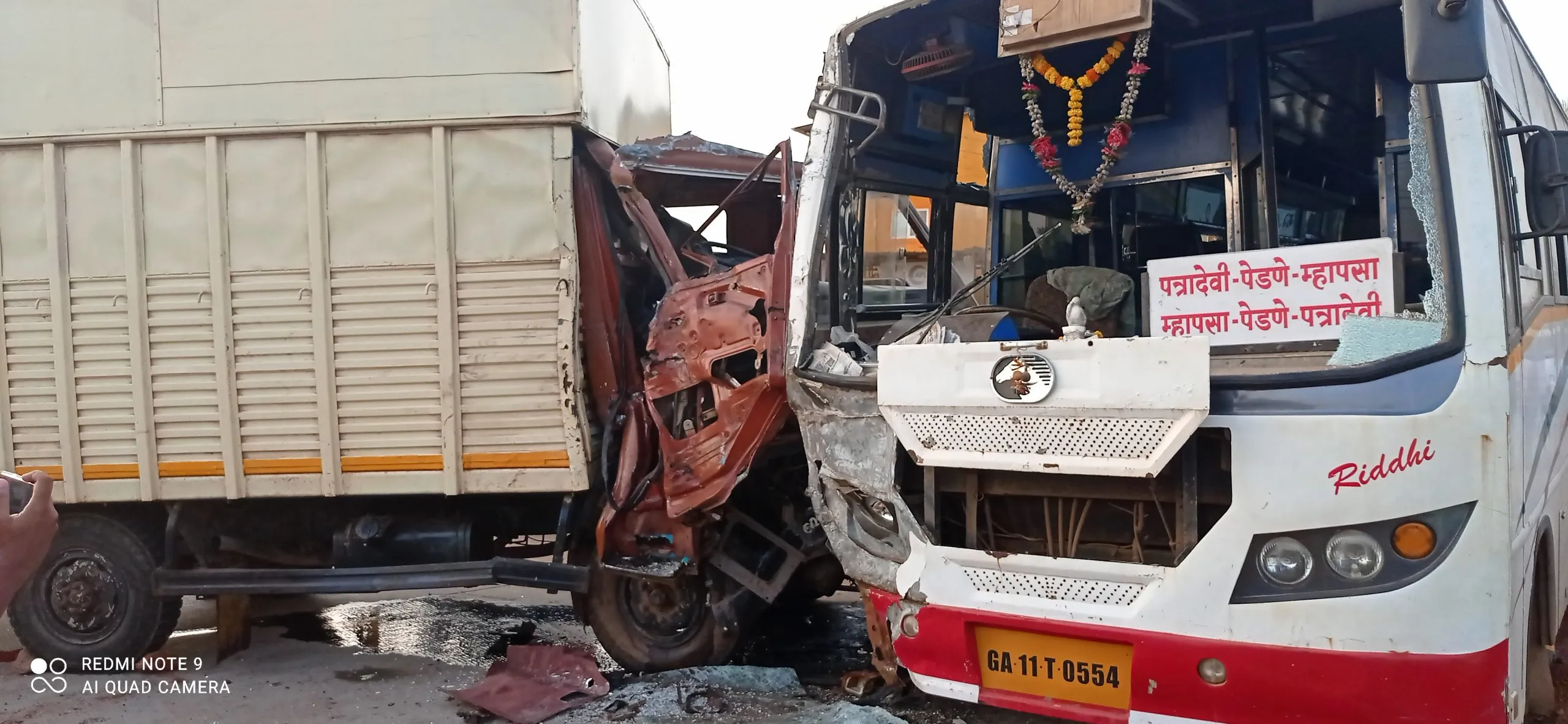 याबाबत पोलिसांनी दिलेल्या माहितीनुसार कॅन्टर चालक विनोद यादव हा आपल्या ताब्यातील कॅन्टर घेऊन पेडणेच्या दिशेने जात होता तर पत्रादेवी म्हापसा अशी वाहतूक करणारी बस पेडणेहून येत होती. यावेळी कोलवाळ बिनानी जवळ देन्ही वाहने पोहचताच कॅन्टर चुकीच्या बाजूने येऊन बसला धडकला. या झालेल्या अपघातात कॅन्टर चालक जागीच ठार झाला. तर बसमधील आठ प्रवाशी किरकोळ जखमी झाले.