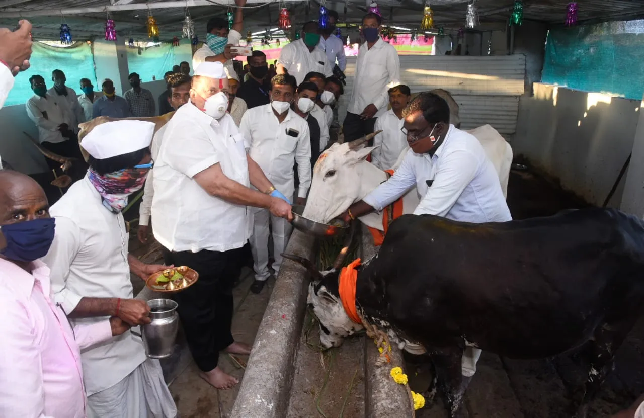 करनूरमध्ये वसुबारस निमित्त गोमातेची पूजा