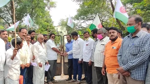 कोरोना महामारीनंतर आर्थिक स्थिती बिघडल्यामुळे सर्वसामान्य जनता, शेतकरी मेटाकुटिला आला आहे. तरी या काळातील घरगुत्ती व शेती पंप वीजबिल भरमसाठ आल्याने हे संपूर्ण वीजबिल माफ करावे या मागणीसाठी आज कुरुंदवाड महावितरण कार्यालयावर स्वाभिमानी शेतकरी संघटनेचे अन्नासो चौगुले, विश्वास बालिघाटे बंडू उंमडाळे यांच्या नेतृत्वाखाली मोरचा काढून टाळे ठोकले.