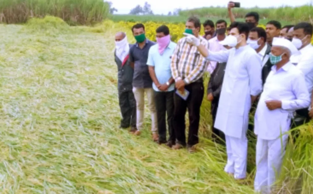 घाटगे पुढे म्हणाले, पावसाने हातातोंडाशी आलेला घास हिरावून घेतला आहे. त्यामुळे बळीराजा आर्थिकदृष्ट्या अडचणीत आला आहे. गतवर्षीच्या तुलनेत यावर्षी अवकाळी पावसाने मोठ्या प्रमाणात नुकसान झाले आहे. तसेच घर व इतर मालमत्तांचे ही मोठ्या प्रमाणात नुकसान झाले आहे. या सर्व नुकसानीची शासनाने गांभीर्याने दखल घेऊन पंचनामे युद्धपातळीवर करावेत. या नुकसानग्रस्तांना त्वरित आर्थिक मदत द्यावी अशी मागणी त्यांनी यावेळी केली.