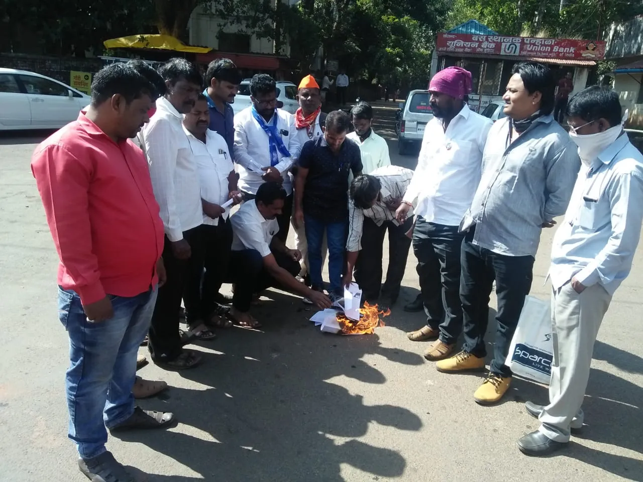 या मागणीचा लवकरात लवकर अंमलबजावणी व्हावी,अन्यथा तीव्र आंदोलन छेडण्याचा इशारा यावेळी संघटनेच्या वतीने देण्यात आले.सदरच्या होळी आंदोलनाच्या पार्श्वभुमीवर झालेल्या घोषणाबाजीमुळे एसटीस्टँड परिसर दणाणुन गेला होता.यावेळी प्रदेशाध्यक्ष श्रीकांत कांबळे,जिल्हाध्यक्ष राजीव सोरटे,आंकाश कांबळे,विक्रमसिंह समुद्रे,सुशांत कांबळे,सागर घोलप,चंद्रकांत काळे,प्रकाश साळोखे,श्रीनिवास खाडे,अमोल कांबळे,महेश हळुकुंदे,शिवाजी पुजारी,मनोज गायकवाड यांच्यासह संघटनेचे कार्यकर्ते उपस्थित होते.