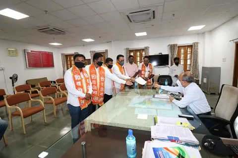 तेथील नागरिकांना बाजारभावाच्या पाचपट भरपाई मिळावी, लक्ष्मीवाडी येथील नागरीकांचे पुनर्वसन करावे, प्रकल्पग्रस्तांना विमानतळाच्या ठिकाणी नोकऱया द्याव्यात, गडमुडशिंगीतील तरूणांना विशेष बाब म्हणून रोजगारात राखीव कोटा मिळावा, या मागण्या केल्या आहेत. जिल्हाधिकारी देसाई यांना निवेदन देताना जिल्हाप्रमुख संजय पवार, पोपट दांगट, विनोद खोत, विराज पाटील, अभिजित बुकशेट, प्रवीण पालव शिवसैनिक उपस्थित होते.